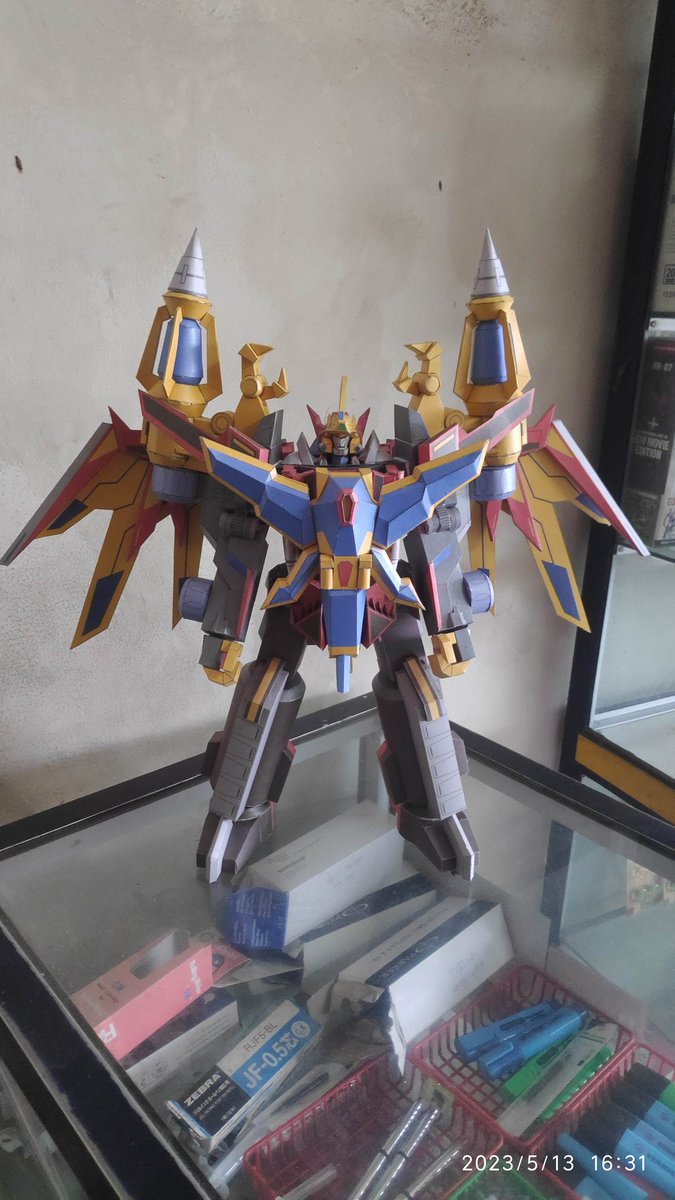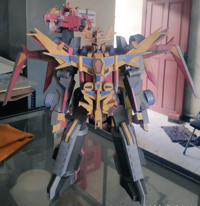 Done test building body, arm, chest, and wing, if you notice, it still has normal dynazenon leg, because i use the leg part from my Kaiser gridknight #GRIDMAN_UNIVERSE #papercraft #ペーパークラフト #SSSS_DYNAZENON