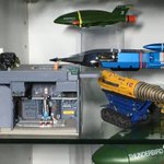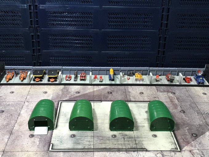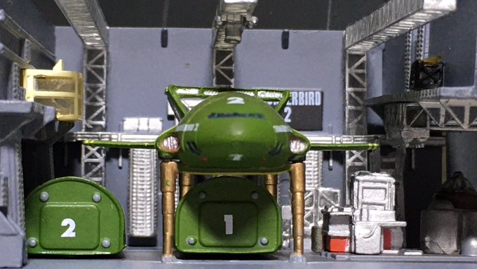 #夜のフィギュア撮影会 お題『時間』 出動時間を短縮する為にサンダーバード2号の格納庫には救助メカを搭載したコンテナポッドが6個配備されているのだ! #サンダーバード #Thunderbirds #コナミ #PODビークル #サンダーバード2号 #サンダーバード2号格納庫 #オモ写