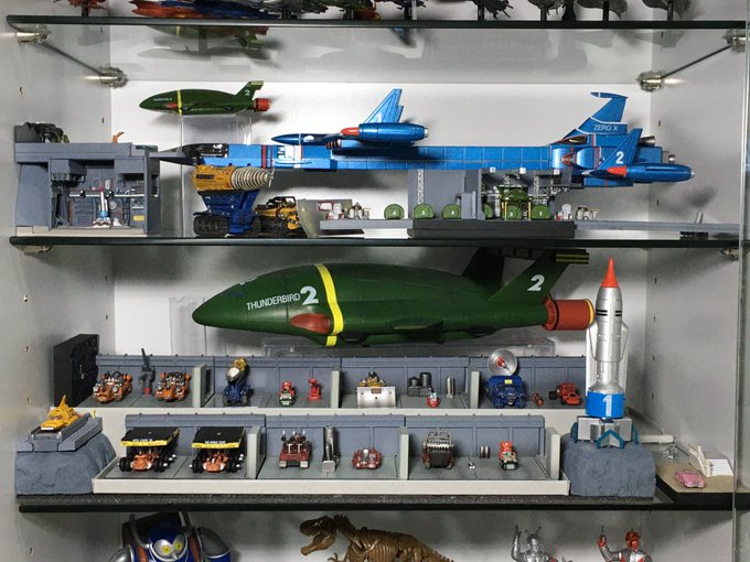 サンダーバード コーナーに1号発射区画を収納ー。2号格納庫の隣に配置。どちらも精密なのに超コンパクトだから収納に困らない😄後ろのZERO-X号の透明台座はもう少し高さを上げた方がいいかな🤔 #サンダーバード #Thunderbirds #サンダーバード1号 #サンダーバード2号 #コナミ #PODビークル #オモ写