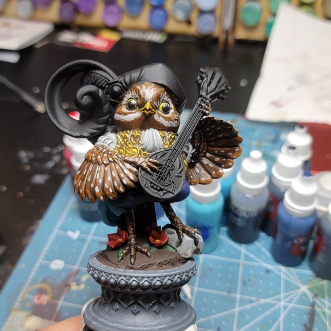 Everyone. Everyone! I need you to stop what you're doing and LOOK AT THIS HANDSOME BOY!!!! Its my Owl Wizard model #3Dprinted by a friend on Printables! Free stls here: printables.com/model/387283-o… This makes me so happy :) #dnd #3Dprinting #dungeonsanddragons #owls #ttrpg #dndart