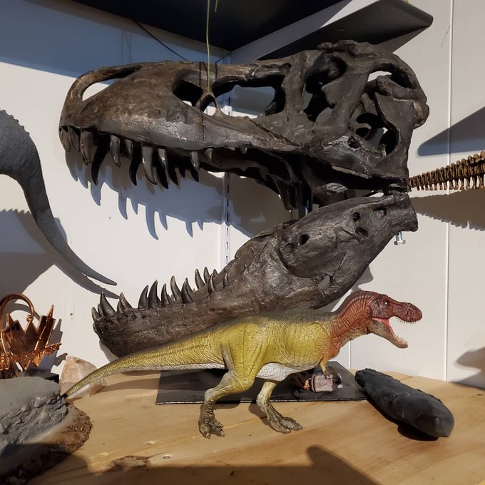 This is another cool shot of the Rebor grab and go T-Rex in my collection with my 1/4 scale Rex skull! I purchased the Rebor Rex from @Everything_Dino #everythingdinosaur #reborstudio #dinosaurs #scalemodel #sciart #paleoart #paleontology #tyrannosaurusrex #trex #theropod