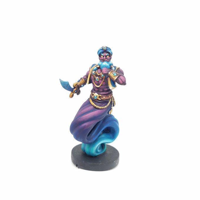 Okay, one last funky colors, I promise! This Djinn is part of the @VaevictisMinis September release on MMF and Patreon! I can't wait to see what the community does with it. #dndart #dndminiatures #minipainting #ttrpg #wepaintminis