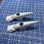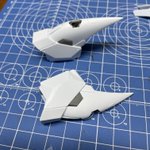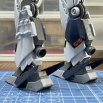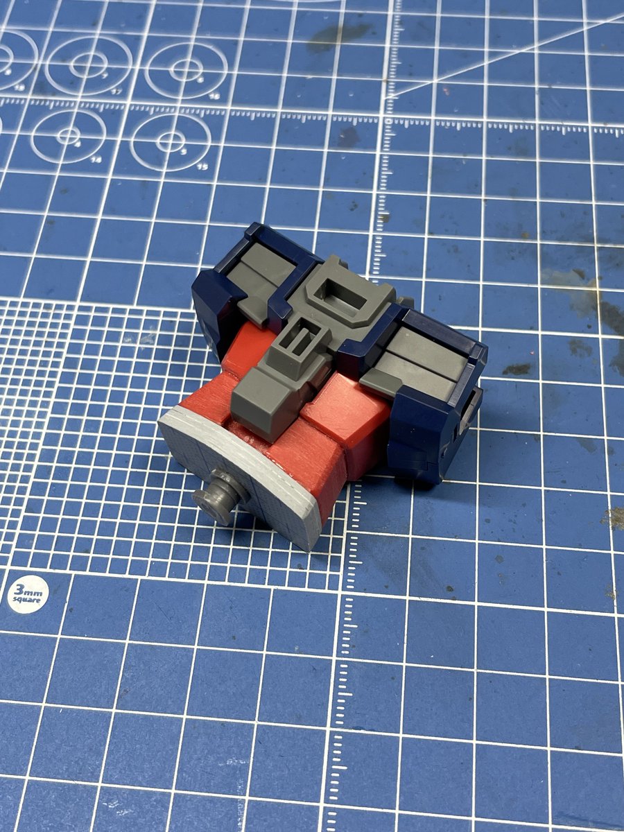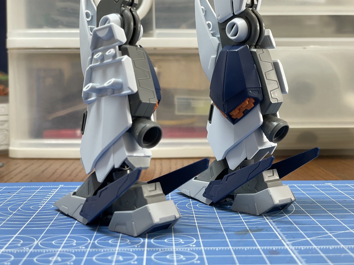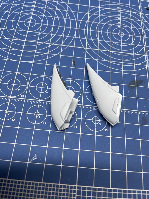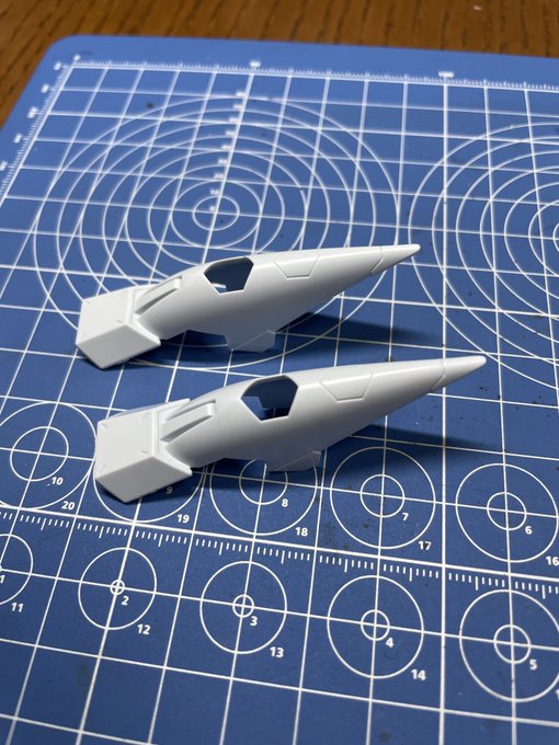 ほぼ2時間かけて、足首カバーを作成。延長した足首関節の目隠しするため。ネットで公開してくれてる方がいて、ほぼ真似させてもらった。感謝しかない。ほんの数ミリだけど、可動を殺さずにするならこうなるよね〜ってサイズだった。#HGUCクスィーガンダム #Ξガンダム #ガンプラ