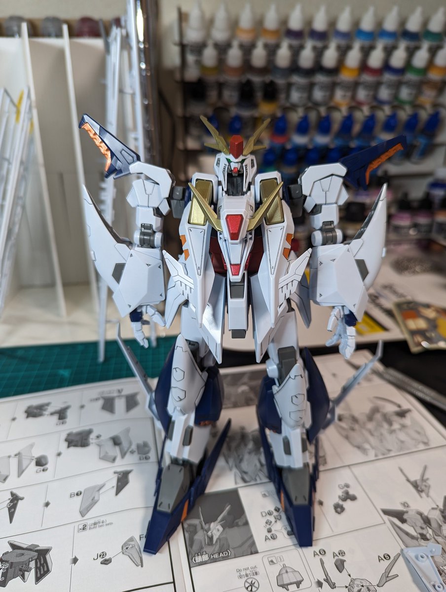 デカールもそこそこに Ξガンダム完成です❗ヽ(´エ`)ノ 部分塗装と墨入れ、シール、デカール、光沢トップコート。 これだけでカッコいい✨(✧Д✧)✨ #Ξガンダム #ガンプラ #閃光のハサウェイ #ガンプラ好きとつながりたい #ガンプラの画像貼るとRTされると聞いて