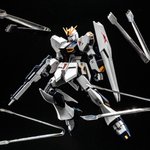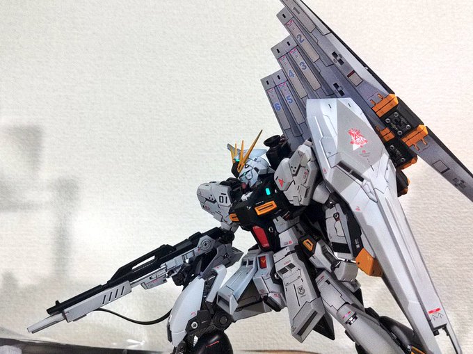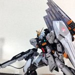 ((*゚Д゚)ゞ ハイ! MG #νガンダム [Arsenicum](和:ヒ素)完成しました 一部にフリーダムのパーツ、それ以外はMGユニコーンのパーツのみを使用し、今できることを詰め込みました( -`ω-)✧ #ガンプラ #ガンプラの画像貼るとRTされると聞いて #gunplaphoto #gunpla