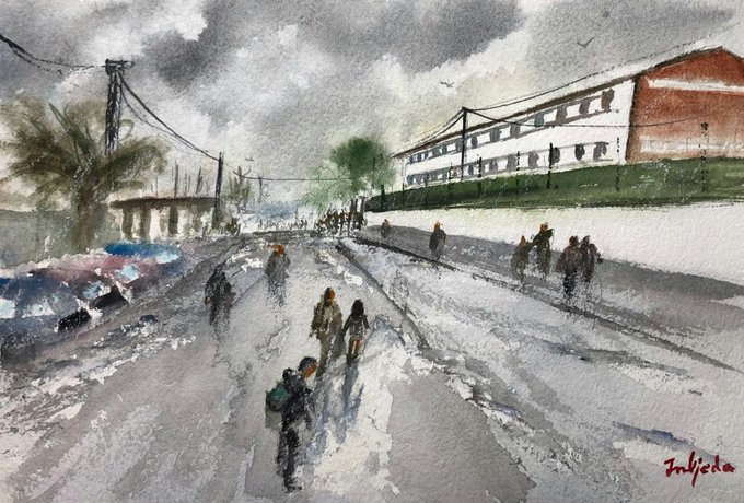 Mañana de lluvia en San Pedro. #Acuarela #watercolor #acquarelle #acquarello #Акварель #水彩 #aquarell #kunst #watercolour #wasserfarben #painting #artist #instaart #watercolour #artwork #gallery #ilustración #paint #Osuna #Sevilla #Andalucía