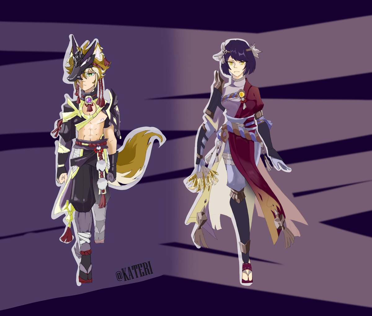 Gorou, acting general of the Tenryō Commission and Kujou Sara, general of the Watatsumi Army. I finally finished working on them)🐶⚡ #gorou #sara #kujousara #genshinimpact #genshinimpactfanart #fanart #digitalart #art #горо #сара #геншинимпакт