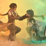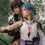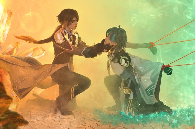 [ Young adeptus & His Archon ] 🔸🔶🔸 Photo: becky0800 (IG) 📸❤️⠀⠀⠀ Edit: pupurga (IG) 🖌️📸⠀⠀⠀ Wig: @Nero_Hell ✂️❤️ set_skandanest (IG) as #ZhongLi 🔶⚖️⠀⠀ Me as #Xiao 👹🌪️ #GenshinImpact #cosplay #zhongxiao #ккгазета #原神 #原神屋台