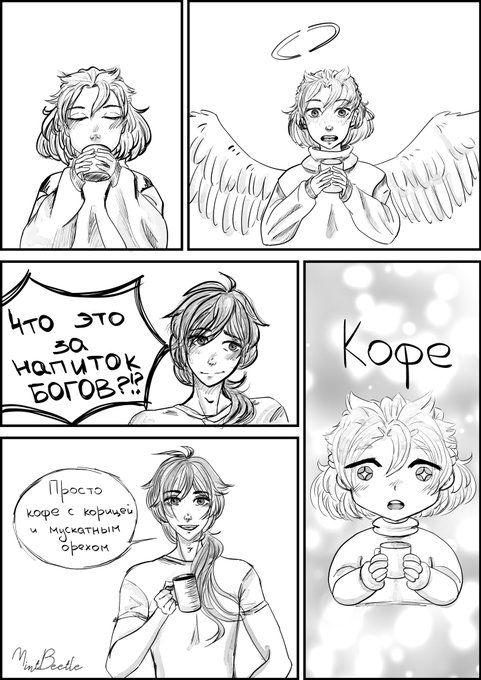 Продолжаю идею @candeebober__ (надеюсь ты не против) Ангел Альбедо, изгнанный за алхимию из рая, впервые пробует сваренный Кэйей кофе #геншин #каебедо #Albedo #Kaeya #Genshinlmpact #genshinimpactfanart #геншинимпакт