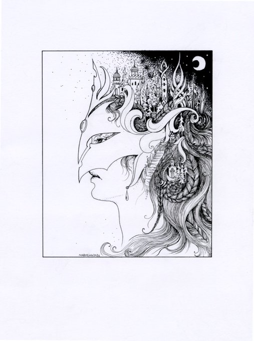 A trip to the #moon (ink, paper) #zzmyxazz #inktober #inktober2021 #collide #blackandwhite #blackwork #lowbrow #inkart #contemporaryart #artcollective #darkart #иллюстрация #графика #illustration