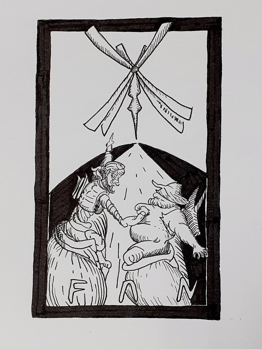 Inktober day 7 - FAN You know, fan like windmill, so... And Sancho was really big FAN of Don Quixote. (Thanks @ccatcherp for this cool idea) #art #graphicart #graphic #sketchaday #ink #inktober #inktober2021 #арт #инктобер #инктобер2021 #графика #literature