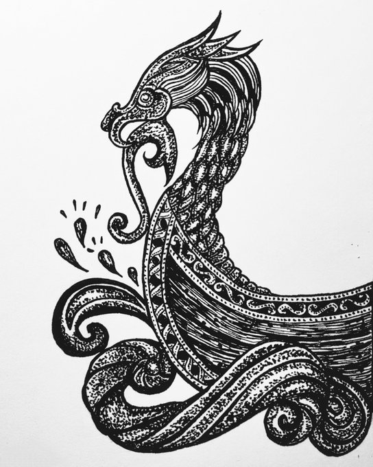 17.10.22 - Salty/Солёный Драккар и солёные морские брызги ✨️ Я сегодня максимально не в потоке и не в ресурсе, но картиночку кое-как отрисовала 🥴 #Inktober #inktober2022day17 #inktober2022 #inktober2022salty #inktoberrussia #моревна_рисует