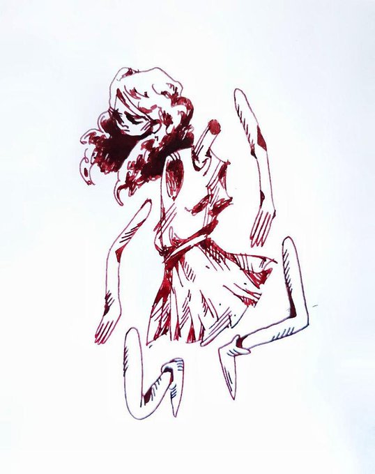 Приходила Систерсон. Пришла, поела, порисовала и спать. Ирмеха не отмечается. ~(*බ*)~ #inktober2021 #inktober #ink #art #sketch #drawing #sketchbook #1day1page #арт #инктобер #скетч #скетчбук #рисование #чернила