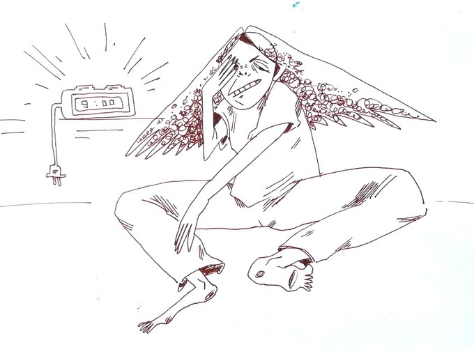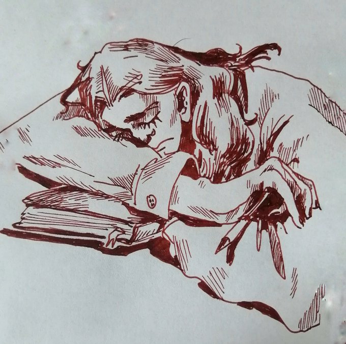 Прывэт! Инктобер, Я о Тебе помню!! Работы много, ложусь поздно, вставать нехочеца. Мэ ~(*^*)~ #inktober2021 #inktober #ink #art #sketch #drawing #sketchbook #1day1page #illustration #morning #арт #скетч #скетчбук #рисование #чернила #инктобер #утро