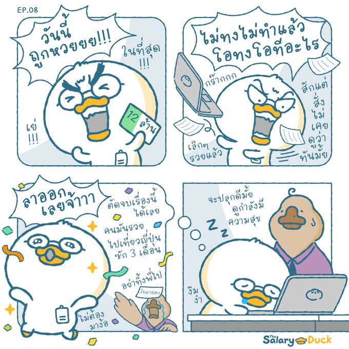 จะหนีกลับเหมือนเจ้านาย หรือนอนตายเพราะโอที เพิ่มยอดขายส่งพิฉ่ายชนะการประกวดได้ไปญี่ปุ่งได้ที่ line.me/S/sticker/2140… ขอขอบคุณทุกกำลังใจฮะ #linesticker #LINEスタンプ #illustration #イラスト #duck #アヒル #アヒル #鳥 #アヒル #カモ鴨 #トリ鳥 #thesaralyduck #ขึ้นฉ่าย