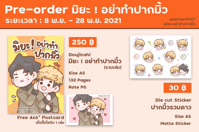 📢Pre-order : มิยะ ! อย่าทำปากมิ้ว ระยะเวลา ⏰ : 8 พ.ย. - 28 พ.ย. 2021 (ปิดฟอร์ม 4 ทุ่ม) รายละเอียดและช่องทางการสั่ง ⬇️ docs.google.com/forms/d/1kI7aO… เช็ค order และสถานะ (จะมาอัพเดทให้เรื่อย ๆ ค่ะ) ⬇️ docs.google.com/spreadsheets/d… #มิยะอย่าทำปากมิ้ว #ซาคุอัตสึ