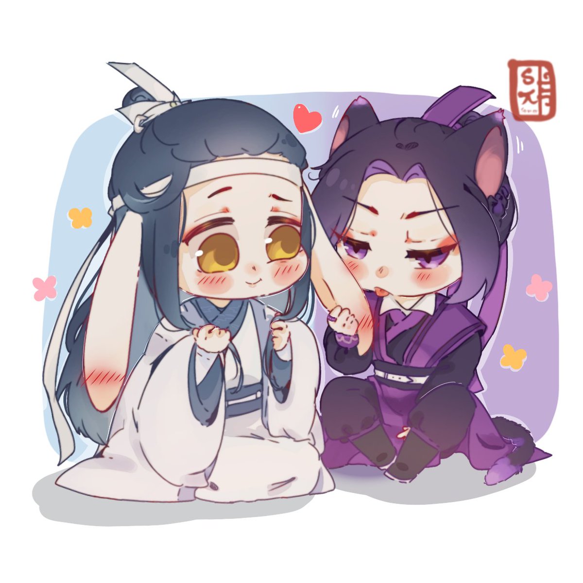 Day1:Animal AU (both got turn in to a🐇&🐈⬛) 💜: no more touch ma bun hubby!!😤 💙: 😳**rabbit crisis internal binky ** #XichengStorm #xicheng #ซีเฉิง