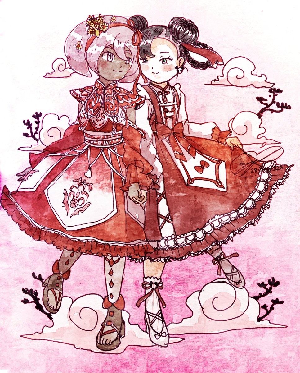 หัวข้อในวันนี้ : หอโกโรโกโสได้ส่งตัวแทนสวมกี่เพ้าและออกมาแจกอั่งเปาแก่คนผ่านไปผ่านมา ตัวแทนที่ว่า : #twstファンアート #ตรุษจีน2565