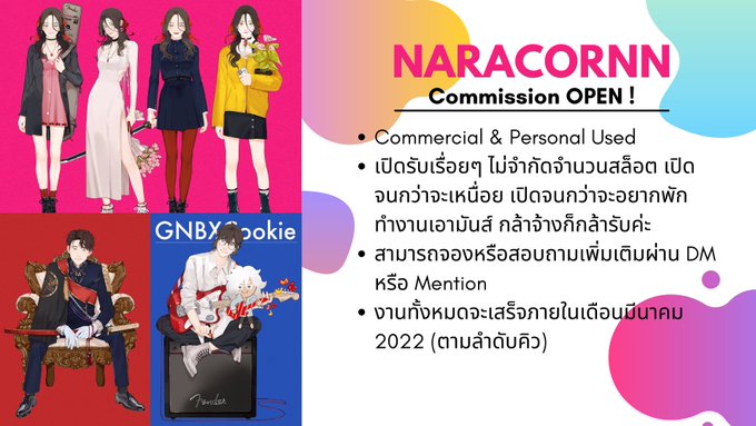 📢 Pls RT 🍀เปิดรับคอมมิชชั่นรอบเดือนเมษายน - มิถุนายนค่ะ รอบนี้พิเศษมีรับงานผ่านทาง Artsign เพิ่มด้วยนะคะ สำหรับเชิงพาณิชย์ 5 คิว สำหรับใช้ส่วนตัว 10 คิว ✨รายละเอียด: bit.ly/NRCCM ✨Artsign : arbum.art/u/Whoisnaracor… #commissionTH #ตลาดกลางโฮมุ้ #CommissionOpen