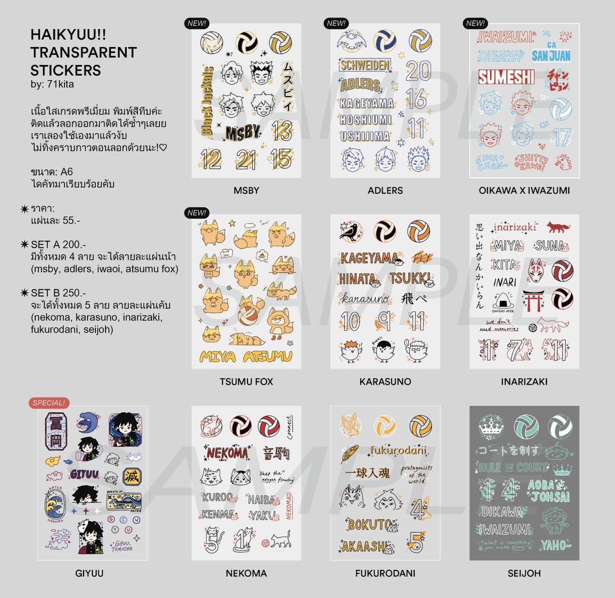 ✨(pls rt)-- 🌸 A6 transparent stickers (รอบ stock) ♡ มี HQ 9 ลาย + KNY กิยูอีก 1 ลายค่าา ♡ สตกแผ่นละ 55.- (สั่งเป็น set มีราคาพิเศษให้เหมือนเดิมแต่มีอยู่ไม่กี่เซ็ตนะคะ) ♡ ค่าส่ง 40/60 ♡ หากสนใจเมนชั่นลาย+จำนวนไว้ใต้โพสท์ได้เลยค่ะ💛 #ตลาดนัดไฮคิว #ตลาดนัดHQ #ตลาดนัดไยบะ