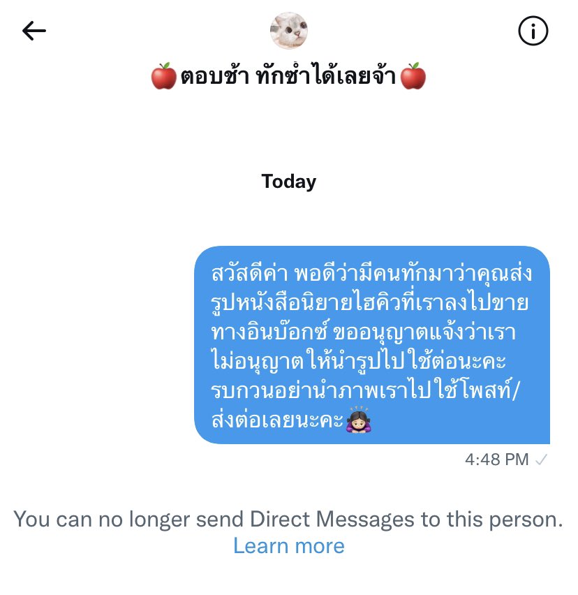 ⚠️มีคนเอารูปนิยายไฮคิวเราไปส่งขายให้คนอื่นๆผ่านเดมนะคะ เราทักไปเตือนแล้ว และถูกบล๊อกกลับมาค่ะ ใครจะซื้อก็ระวังนิดนึงนะคะ;-; เราลงขายแอคนี้แอคเดียวค่ะ #ตลาดนัดไฮคิว #ตลาดนัดHQ twitter.com/71kita/status/…