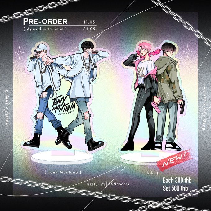 [Pls RT] แจก diki 1 ชิ้น PRE-ORDER — AgustD with Jimin standee 🤍 TONY MONTANA 300-. 🤍 Diki 300-. (New!) 💖 SET 580-. 🗓11.05 - 31.05 2022 ทาง Line shop 🔗 shop.line.me/@206tzbew/prod… 🌐 GO pls DM @KNgoodss (paypal available!) #yoonmin #ตลาดนัดfaบังทัน #ตลาดนัดบังทัน