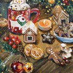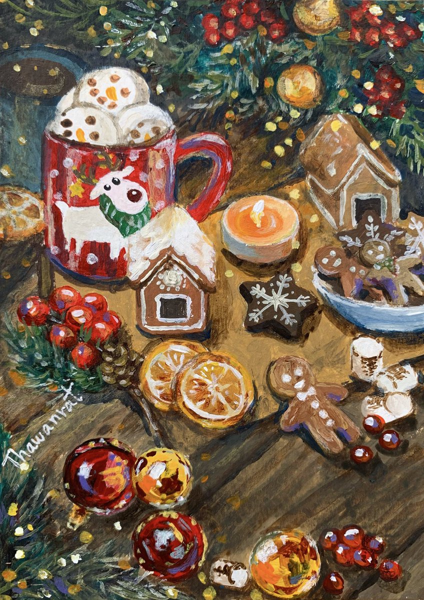 🎄 •<| ;) 🪵🥛🍪 Happy Christmas * .🎅🏻 * ปักโปสการ์ดที่จะแถมในรอบ pre-orderนี้ค่ะ ไม่มีพิมพ์ขายนะคะ🥰 #ทำงานบ้างkeaw