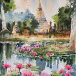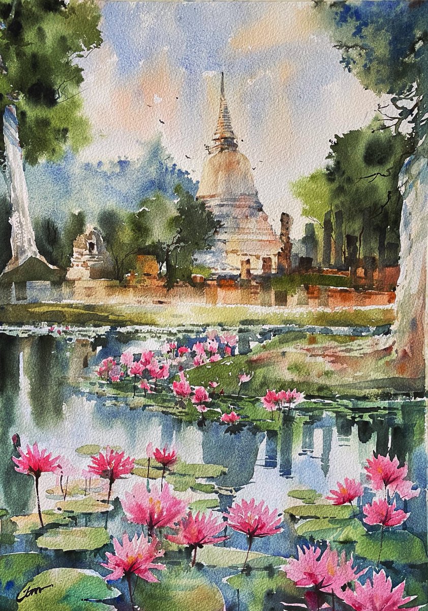 เสร็จแล่ววว Watercolor On Arches 300grm Size 36x56cm. Roman szmal watercolor สัญชาติโปแลนด์ เนื้อนิ่มฟุ้งใช้ง่ายดีค่ะ ส่วนตัวชอบสี cobalt blue deep ของยี่ห้อนี้มาก ผสมได้หลากหลายแถมยังคงโชว์ตะกอนเด่น พรีได้จาก @gotamt23 #รีวิวสีน้ำ