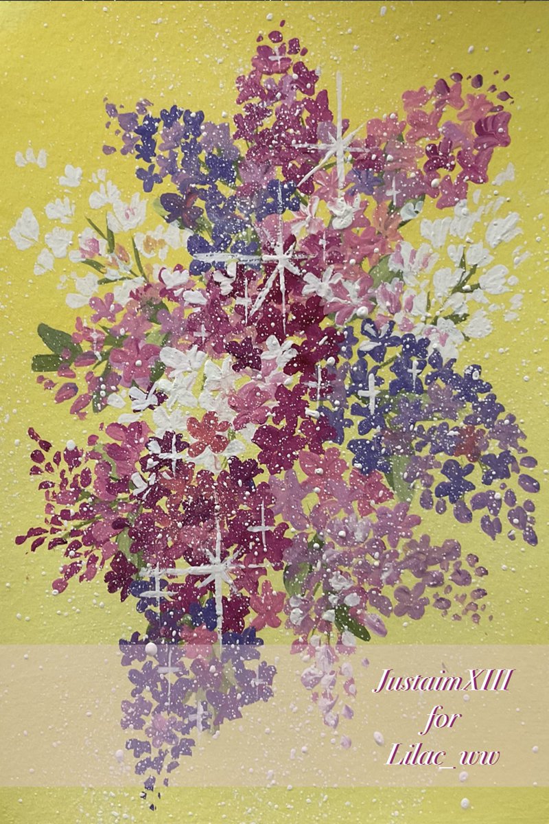 #รีวิวCMSอเอม ‘ไลแลคในแจกันล่องหน’ งานคอมมิชที่ตั้งใจลงสีพื้นหลังสีเหลืองเป็นงานแรก เพื่อให้โทนภาพเป็นงานที่มองกลับมาทุกครั้งก็จะได้หัวใจที่นุ่มฟูราวกับได้รับกำลังใจอยู่ตลอดค่ะ✨