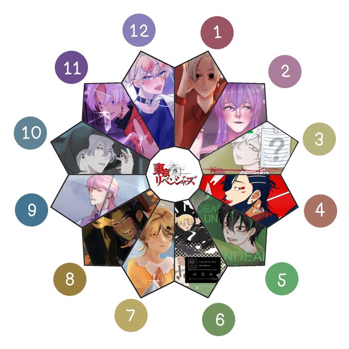 ฝากงานวงล้อสีโตมันค่า ในธีมเพลงต่างๆโดยตีความเนื้อหาตามความคิดของนักวาดแต่ละคน รายชื่อนักวาดอยู่ในเมนชั่นค่ะ 12 color wheel Tokyo Revengers in theme 'Song' #みんなのイラストで12色相環 #วงล้อสี #TokyoRevengers #東卍FA