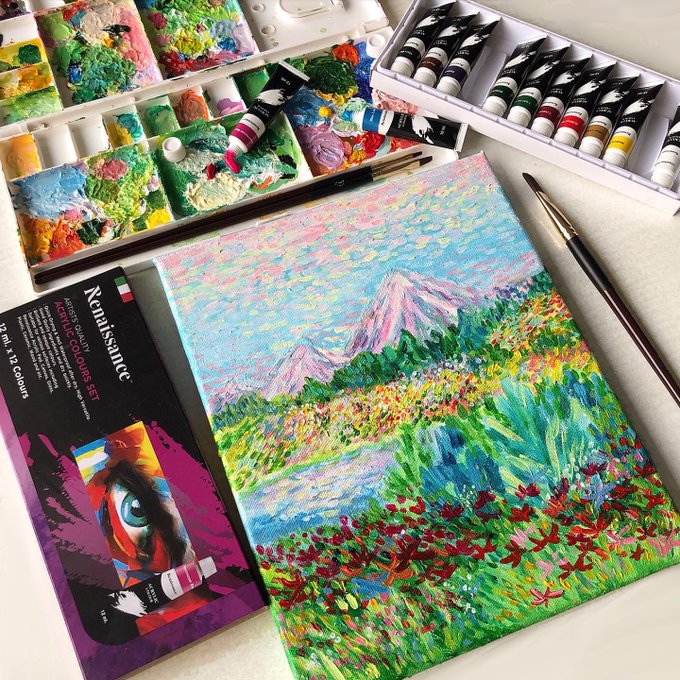 วาดไปหิวไป 🥨🥐ลองมาวาดรูปลงเฟรมกันบ้าง รอบนี้ใช้สีอะคริลิค Renaissance สีคุณภาพดีเลย เนื้อสีสด ผสมสีออกมาสวย ราคาก็ไม่แพงเลย กล่องละประมาณ 250 บาทได้ 12 สี ใครอยากลองฝึกสีอะคริลิค เราแนะนำเลยค่ะ #วาดรูป #สีอะคริลิค #รีวิวเครื่องเขียน