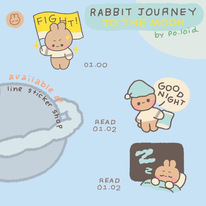 pls rt🌷/ Rabbit journey to the moon 🐰✨ การเดินทางของกระต่ายน้อยสู่ดวงจันทร์ ต้อนรับปีเถาะ พาน้อนไปโลดแล่นในแชทโดย search ชื่อ po.loid ใน sticker shop ได้เล้ย To da mooooon~ (link และตัวอย่างต่อในเธรด) #สติ๊กเกอร์ไลน์