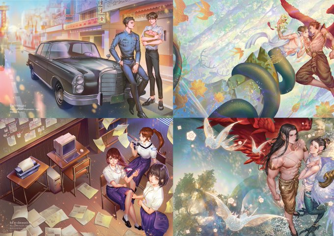 #สายผลิตปก เข้าไปส่อง มีแต่คนเก่งๆ ;7; เพิ่งกลับมารับงานปกช่วงนี้ ส่วนใหญ่จะได้โจทย์วาดปกคาร์แรกเตอร์ กับ SD แต่จริงๆก็ทำงานฉากหลัง / บรรยากาศ ก็ได้นาจา