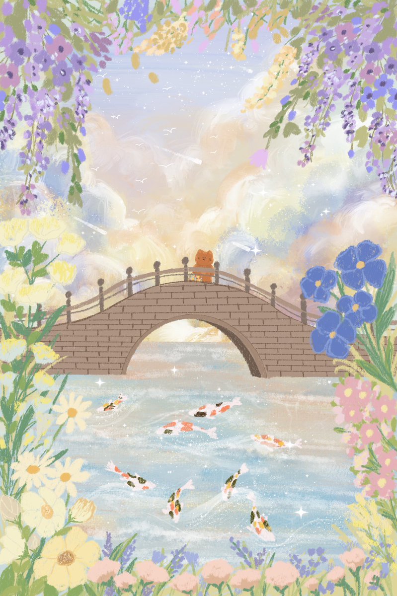 เจ้าเหมียวปุ๊กปิ๊ก บรรยากาศสดใส ก้อนเมฆนู่มๆ และดอกไม้นานาพันธุ์คับ มีอย่างอื่นอีกมุ้ยไม่แน่ใจ 555555 🍃🌼 #เอกลักษณ์งานวาดของเรา