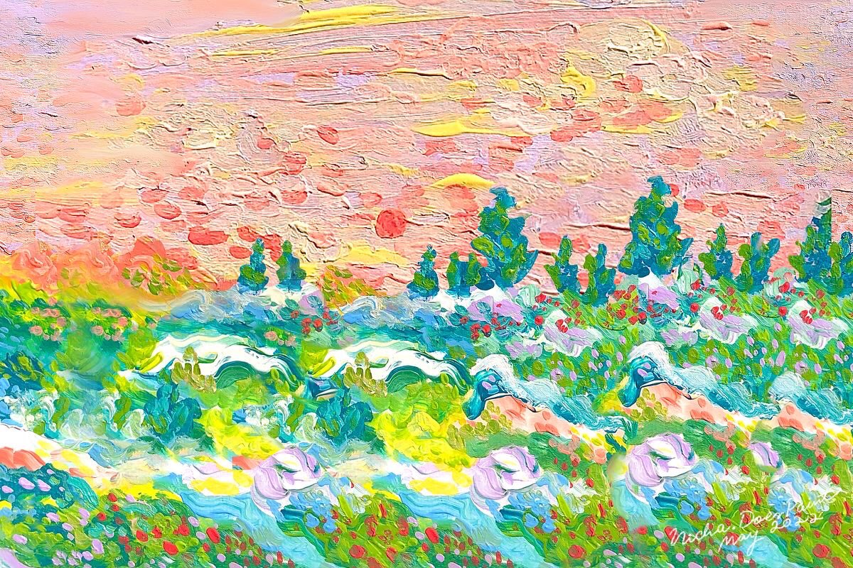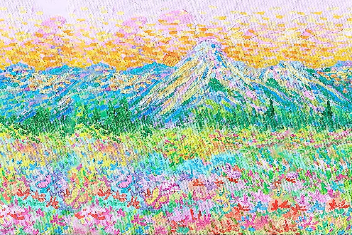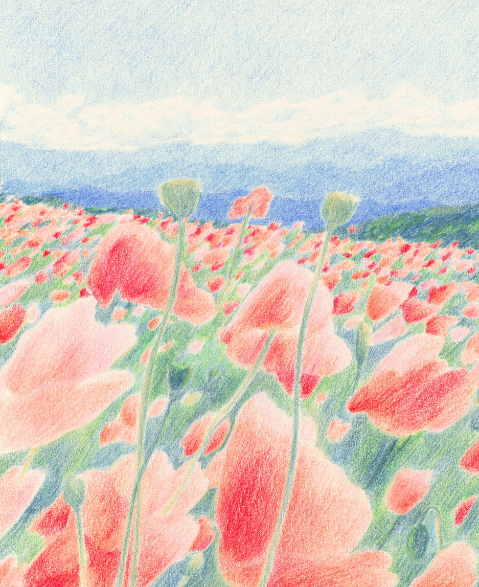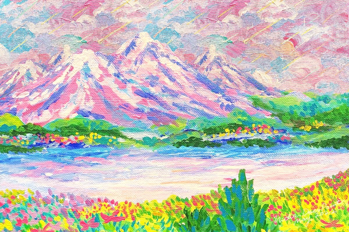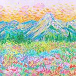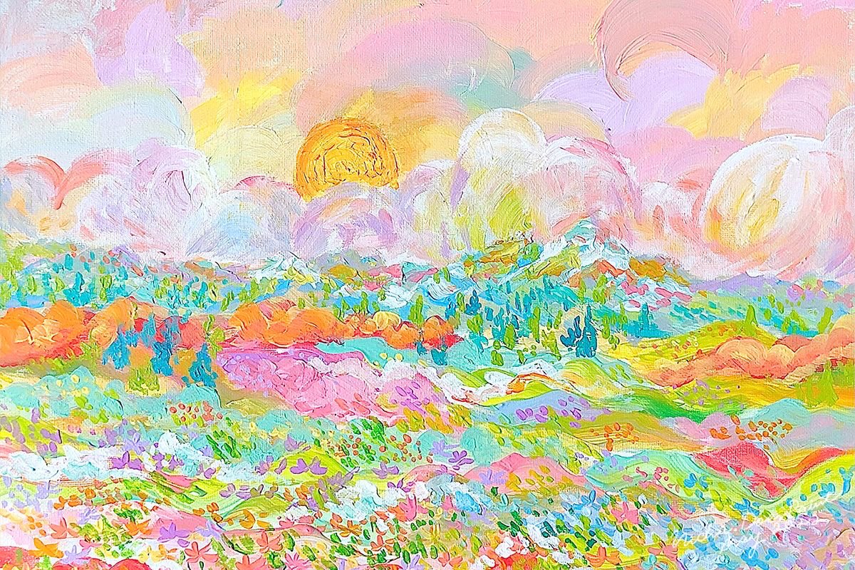 #เอกลักษณ์งานวาดของเรา งานแลนสเคปสีสดใส คุณเซินบอกว่าสดใสเผื่อดอกไม้ สดใสเผื่อท้องฟ้าค่ะ ฝากตัวด้วยนะคะ💖🌈🌞🎨