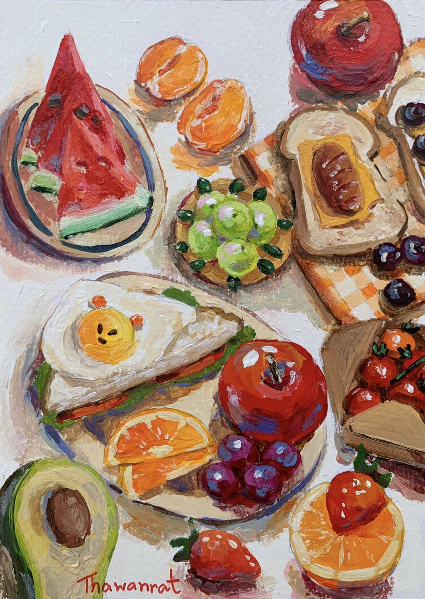 น่าจะเป็นสีโทนร้อนล่ะมั้ง หยุดที่จะจิ้มสีแดงกับสีส้มไม่ได้เลย อีกอย่างน่าจะเป็นความเยอะ เยอะในที่นี้หมายถึงแทบจะไม่มีพื้นที่ว่าง มีสเปสตรงไหนต้องหาของมาเติม อ้อแล้วก็เป็นคนกลัวตรงกลางด้วย 555555555 ฉันจะขึ้นรูปจากขอบนอกก่อน(ไม่เคยสังเกตจนอาจารย์แซว) #เอกลักษณ์งานวาดของเรา