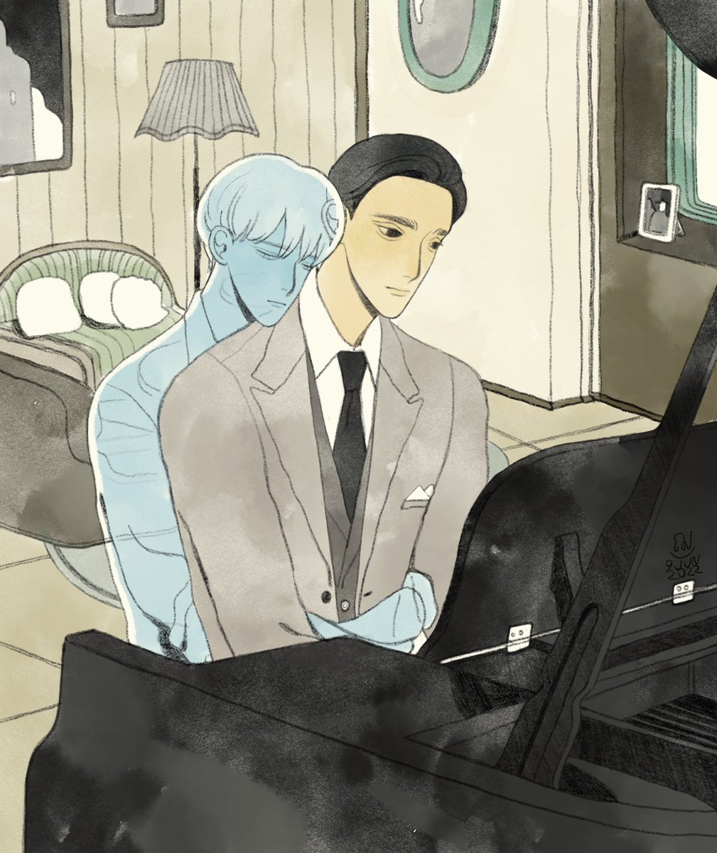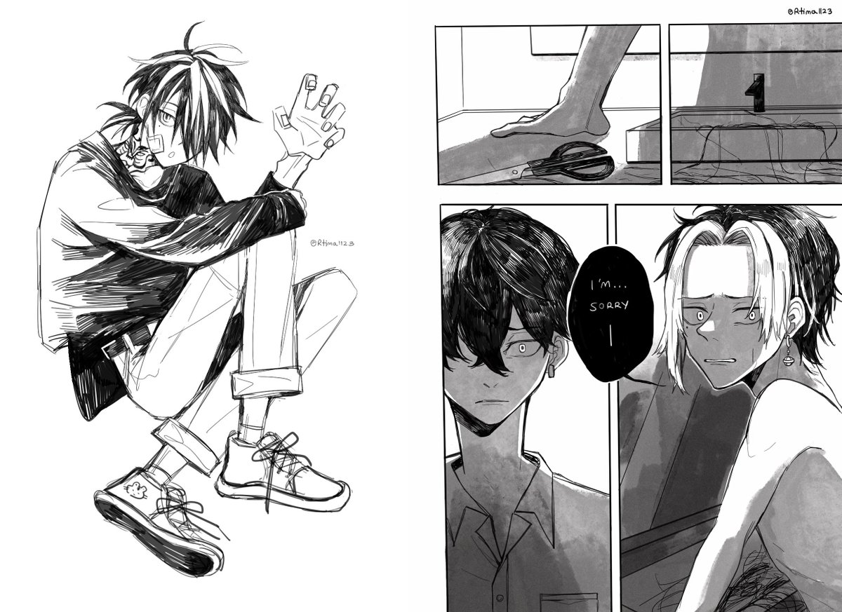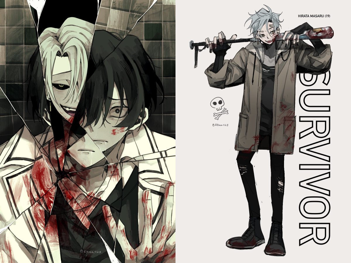 #เอกลักษณ์งานวาดของเรา ชอบลงสีตุ่น ๆ กับบรรยากาศที่เหมือนมีคนตาย (?) ชอบลงสีเลือดมาก 😭 ส่วนถ้าเป็นงานขาวดำคิดว่าวิธีลงเส้นเป็นอะไรที่มองแล้วจำงานตัวเองได้ล่ะ! (เนียนเปลี่ยนพินซะเลย นี่แน่ะ สวัสดีค่ะ ٩(◦`꒳´◦)۶)