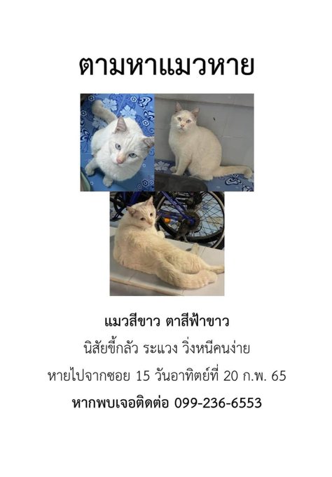 ฝากด้วยค่ะ อันนี้เราลงรายละเอียดลักษณะน้องไว้ด้วย เผื่อเจอตัว ช่วยติดต่อกลับม่หน่อยนะคะ ไม่สบายใจเลยจริงๆ เพราะว่าตอนหลุดไปน้องหลุดไปตอนไม่ได้ใส่ปลอกคอค่ะ #แมวหาย #แมวจร #แมวหาบ้าน #แมวจรหาบ้าน