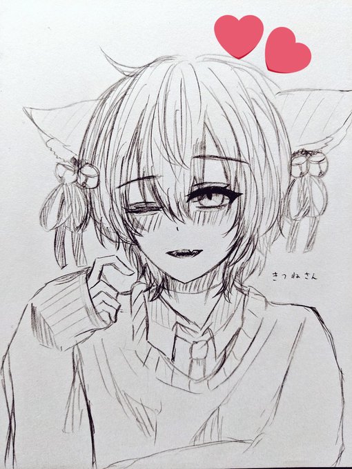 ハートでいい子になってリツイート(?)で悪い子になるきつねさん🔪 (巫山戯ましたすみません(((()#きつねさん🔪#ああ麗しきボス #神の絵を借るきつね #イラスト #イラスト好きな人と繋がりたい #イラスト練習 #Vtuber