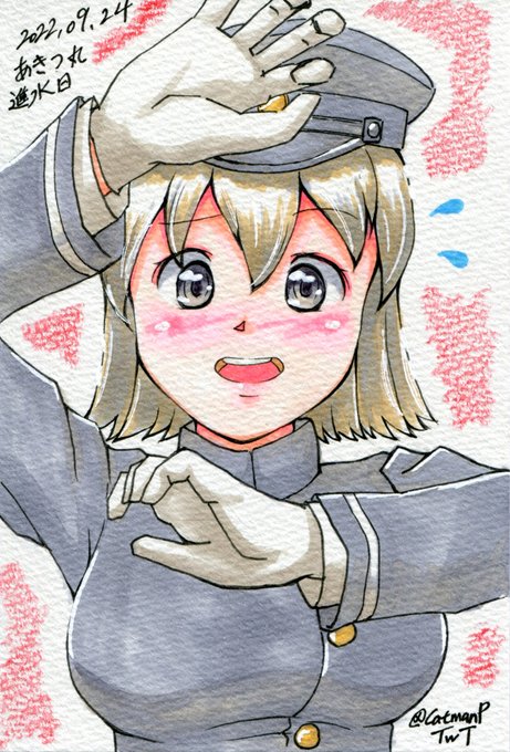 #あきつ丸進水日 #艦これ版深夜の真剣お絵描き60分一本勝負 #艦これ版真剣お絵描き60分一本勝負_20220924 慌て恥ずかしがるあきつ丸ちゃん、可愛いなぁ~ お誕生日間近メモ: 神風、青葉、鹿島、矢矧、雲龍(9/25) 風雲(9/26) 叢雲、陽炎(9/27)