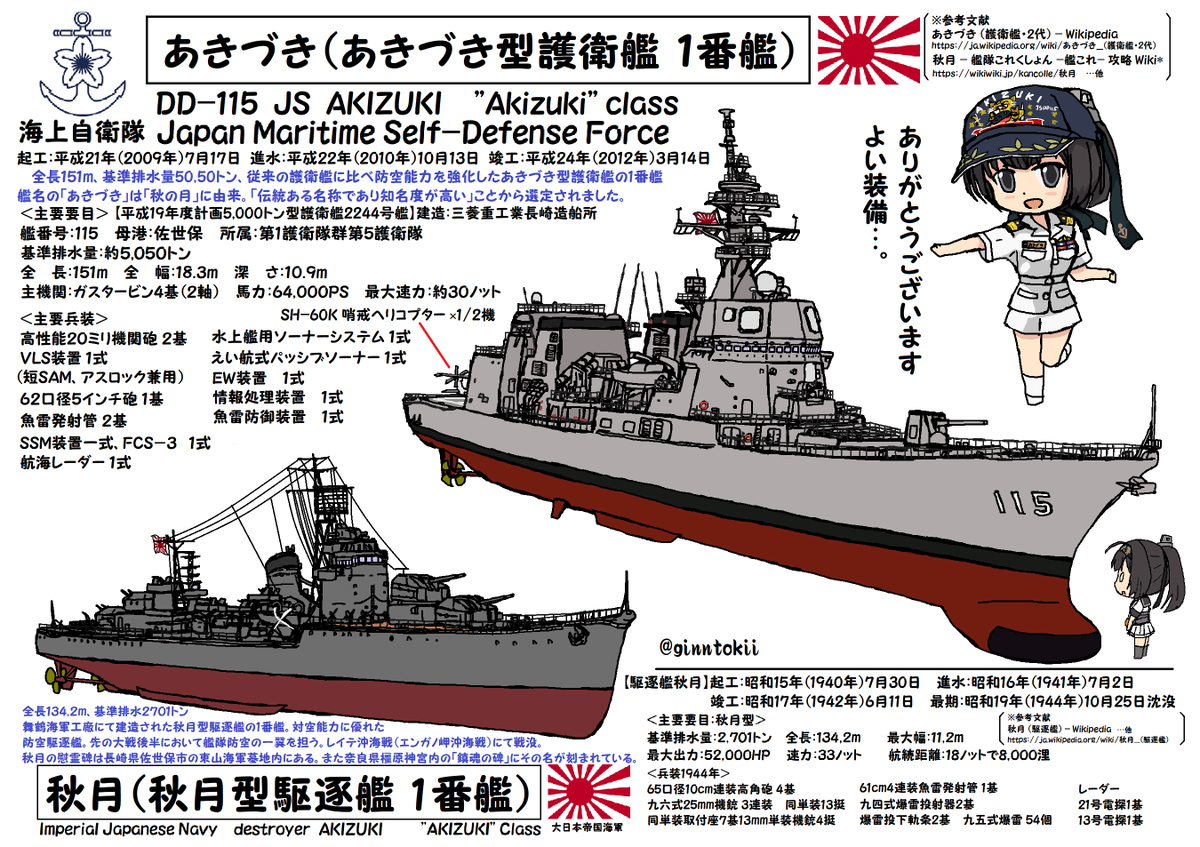 今日、7月17日は 護衛艦「#あきづき」「#まきなみ」起工日 護衛艦「#はぐろ」進水日 空母「HMS #クイーン・エリザベス」進水日ですが twitter.com/ginntokii/stat… #日本海軍 駆逐艦「#初雪」戦没の日でもあります。 昭和18年(1943年)7月17日 ブーゲンビル島のブインにて空襲により。 #艦これ