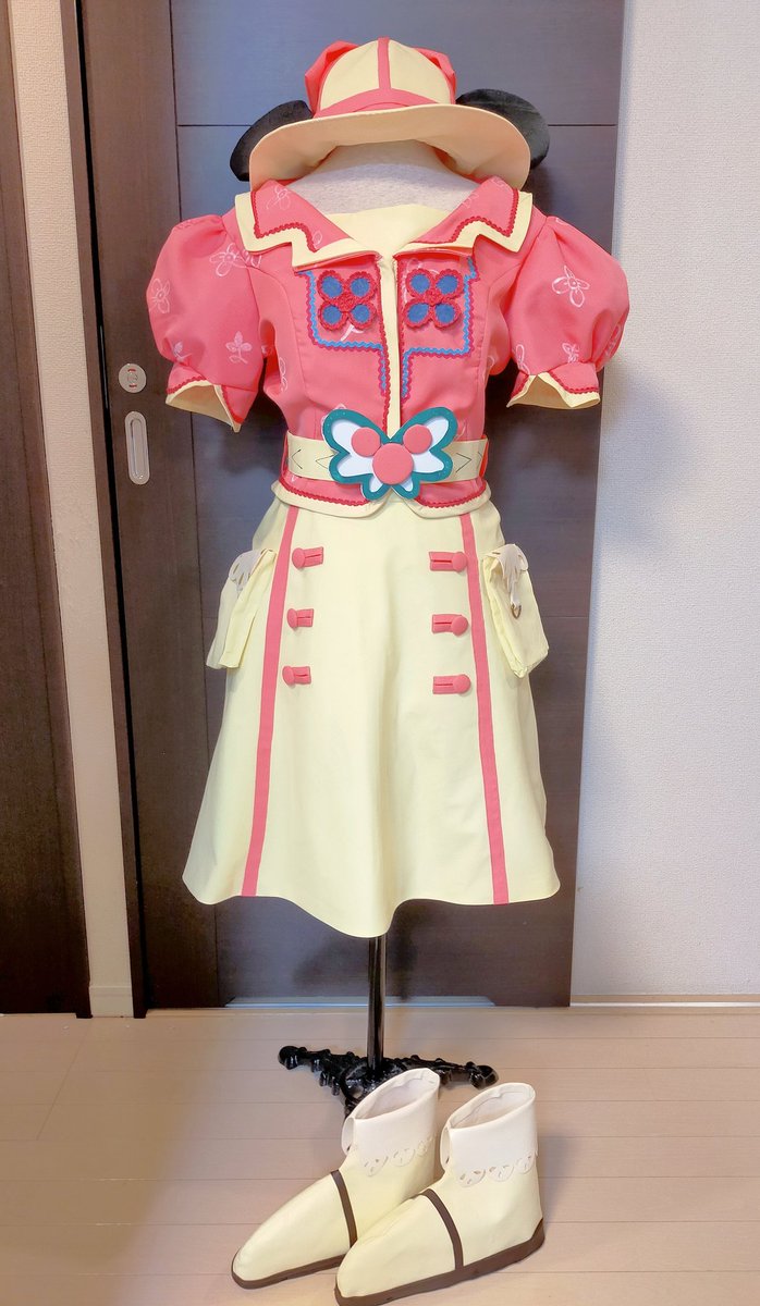 今年のDハロ3着目完成✨✨✨ ディズニーシー ミッキー&フレンズ グリーティングトレイル ミニーマウスです♥♥♥ めちゃくちゃ難産だった…😇 色々反省点もあるけど、可愛く出来たと思います!! 今からグリのこと考えて緊張で吐きそう🤤 24日!明日着る! #あきらさんの衣装備忘録 #Dハロ仮装2022