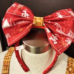 DisneyHandycraftシリーズ カットクロスでお洋服第4弾! 今年1着目✨ パークフードの容器モチーフに美味しそうなワッフルプリント生地をあわせました〜✌️ 柄×柄でイメージしてたよりも派手になってしまった🤣 リボンもあわせて作ったのでカチューシャに合わせて使う! #あきらさんの衣装備忘録