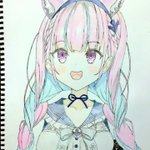 おはようございます(^o^ゞ ホロライブ2期生の湊あくあさんの模写が色塗り終わりましたヽ(*´∀`)ノ♪ #ホロライブ #湊あくあ #あくたん #アナログ絵 #模写 #絵描きさんと繋がりたい #みんなで楽しむTwitter展覧会