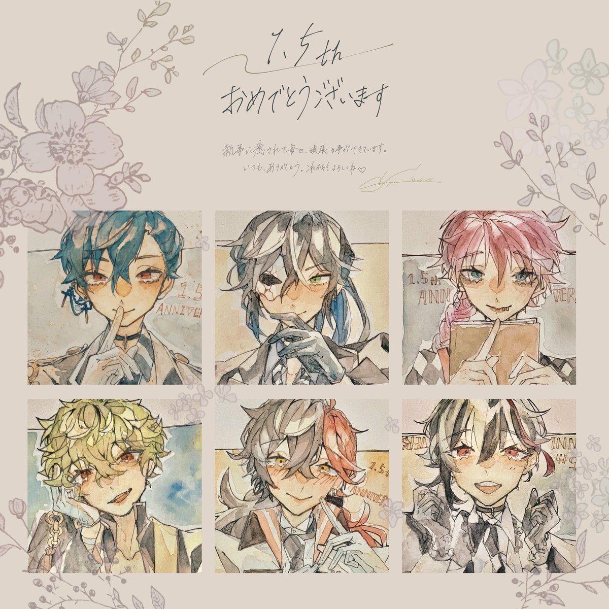1.5周年おめでとうございます。 6日前から始めたカウントダウンイラストをまとめました! まだまだ主歴は浅いですが、素敵なコンテンツを通して色々な出会いに恵まれて幸せです🤍🤍🤍 #あくねこアニバーサリー /#あくねこ_FA