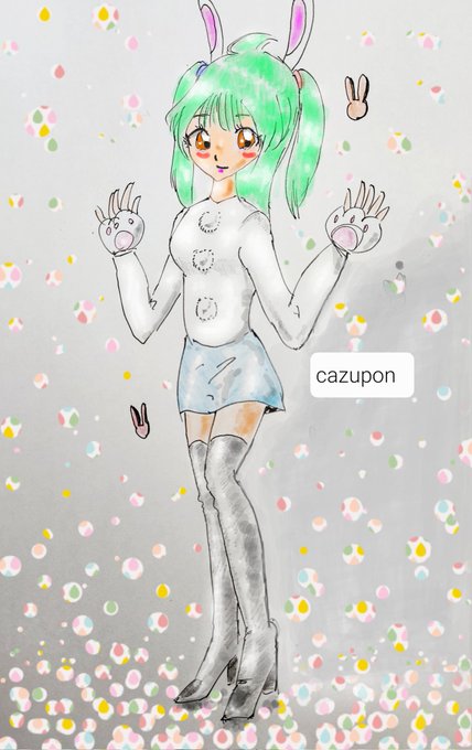 前回のアナログ絵🐰 幸せの7色ボールが世界を敷き詰める~というコンセプトで塗り※タップ推奨 #イラスト好きな人と繋がりたい #絵柄が好きって人にフォローされたい #イラスト #あけおめイラスト