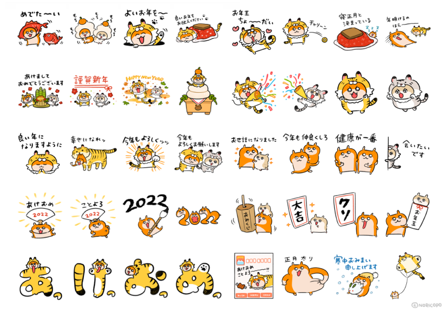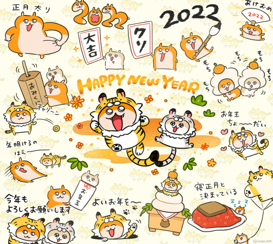 2022あけおめスタンプ がでましたฅ•ﻌ•ฅ🐯🎍✨ store.line.me/stickershop/pr… 2022年3月31日までの期間限定発売です✨ #あけおめスタンプ2022