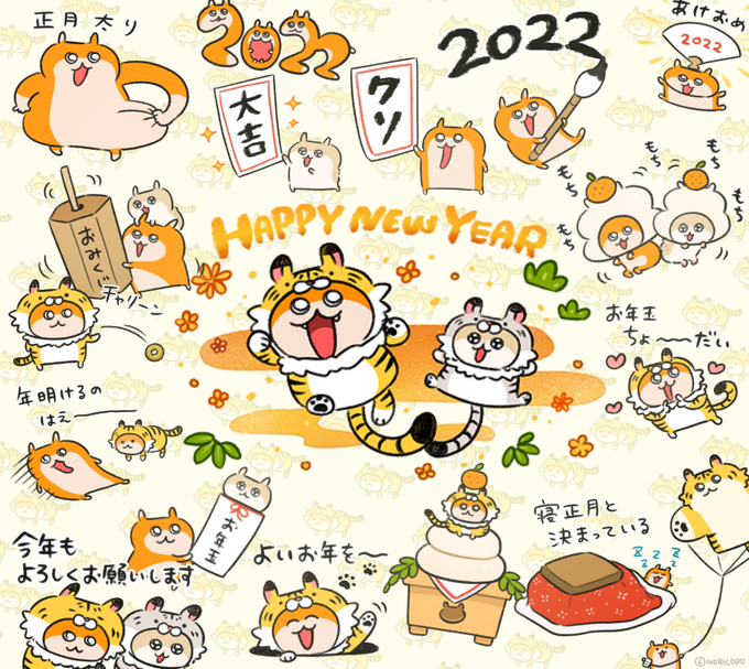 🌟新作スタンプ🌟 あけおめ2022!クソハムちゃん【期間限定】 クソカワイイハムスター達が新年を一緒にお祝いします。 🎍新作はコチラ! store.line.me/stickershop/pr… ※販売:2022年3月31日まで 🎍English ver. line.me/S/sticker/1757… #あけおめスタンプ2022 #あけおめスタンプ告知コンテスト