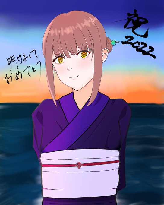 あけましておめでとうございます #あけおめスタンプ2022 #あけおめ #お正月イラスト #イラスト好きさんと繋がりたい #イラスト #絵描きさんと繋がりたい #チェンソーマン #マキマ #アトリエの系譜 #アトリエの系譜S