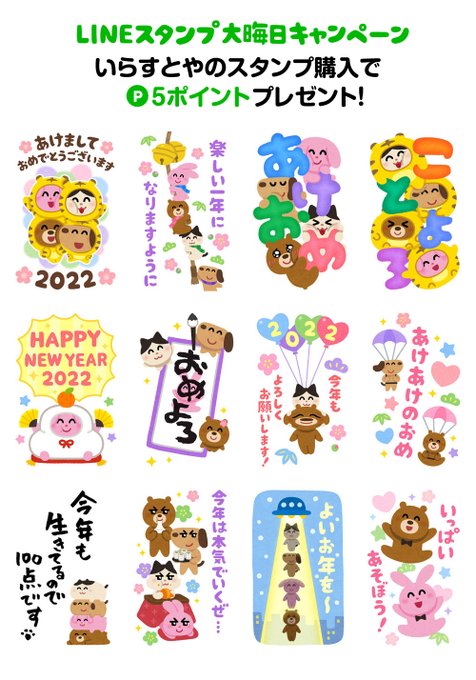LINEスタンプ公式アカウントをフォロー&スタンプ購入でLINEポイント5ポイントもらえるキャンペーン中です campaign.line.me/sticker/sticke… ※あけおめスタンプ以外も対象です ※期間:2021/12/31 10:00~23:59 #あけおめスタンプ2022